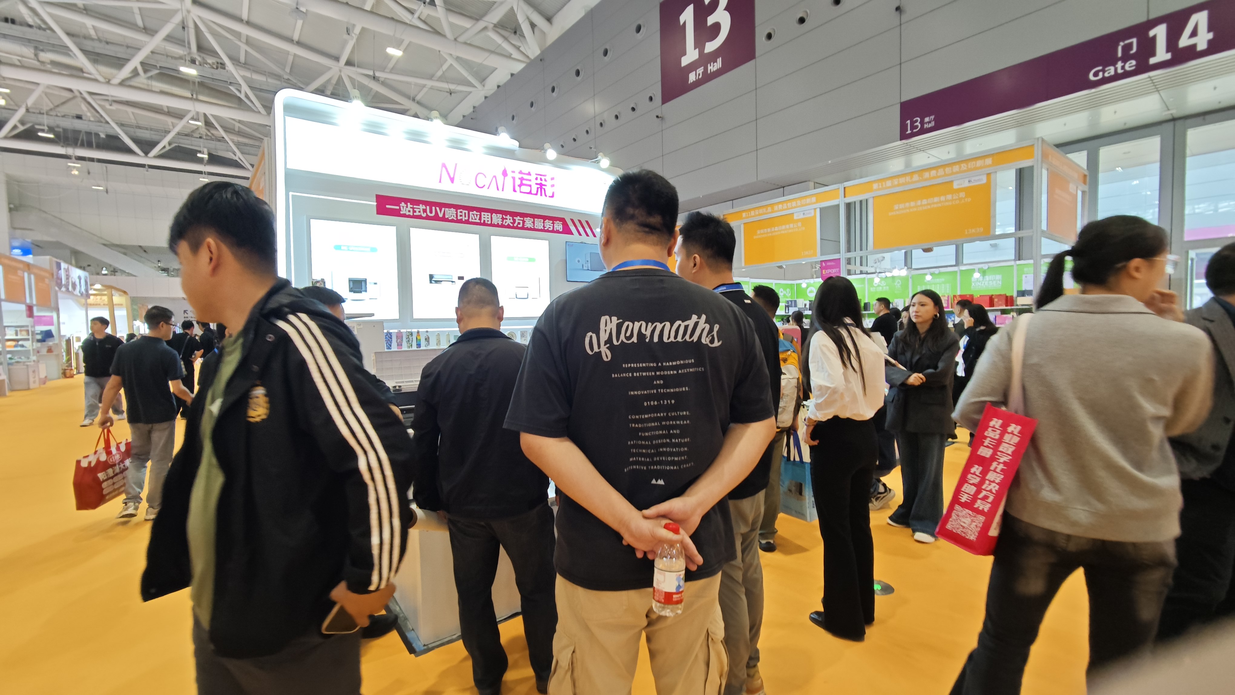 技术与产品层面,诺彩核心打印设备集体亮相,凭借 “高精度 + 高适配” 的核心优势圈粉众多客户,不仅吸引新客户驻足体验,更有老客户专程到场交流技术细节。面对客户关于场景适配、打印效率的疑问,技术团队全程一对一深入解答,从原理到应用讲透细节,专业度获得现场一致认可。