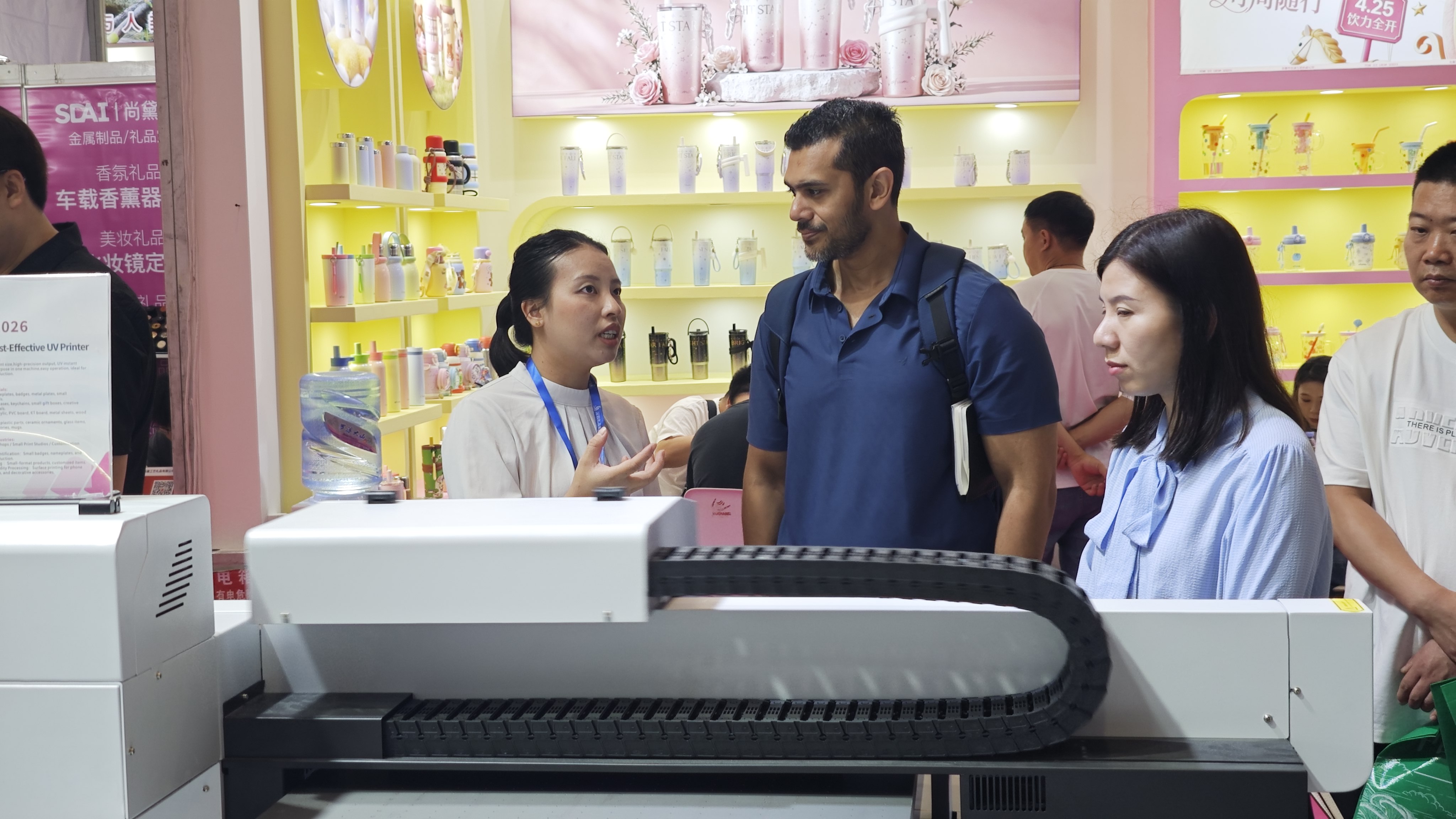 开展三日以来,诺彩展位始终保持高人气态势,往来客商络绎不绝。无论是寻求批量礼品定制解决方案的采购商,还是探索行业新方向的创业者、行业同仁,都纷纷聚焦诺彩,深入咨询各类礼品打印应用场景、落地可行性及成本优化方案。