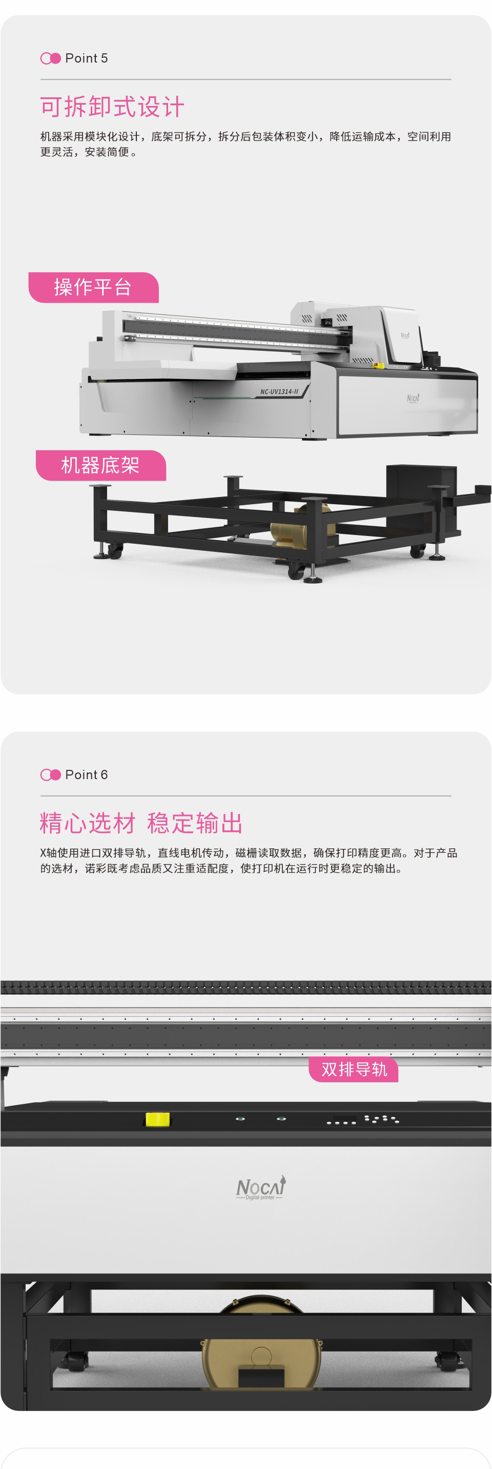 机器采用模块化设计,底架可拆分,拆分后包装体积变小,降低运输成本,空间利用更灵活,安装简便 。