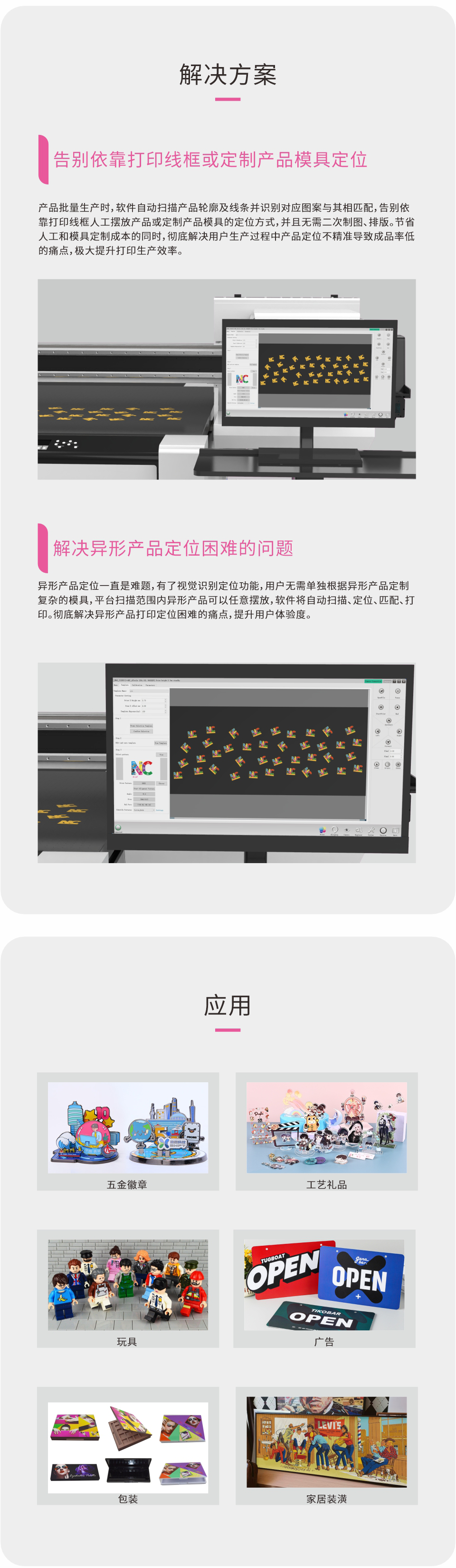软件智能控制高落差打印,喷墨落差最高可达8mm,降低打印介质平面度要求,满足部分产品凹凸面打印需求。